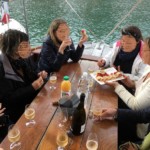 A 15h, embarquement sur une belle pinasse revisitée (façon petits mouchoirs) pour finir le repas avec un plateau de fromages, un vin de Bordeaux bio et un dessert régional accompagné de bulles de Bordeaux.